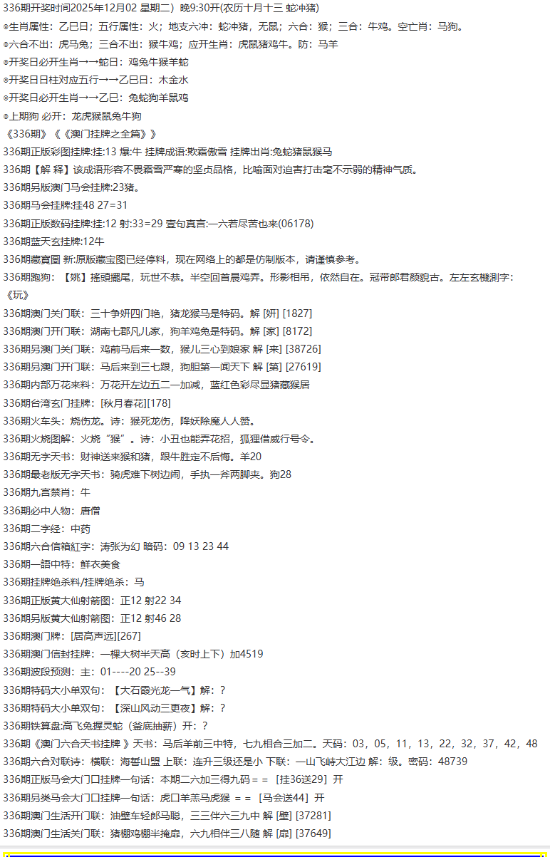 336期:前后肖必中【后肖后肖】开:0000准 |